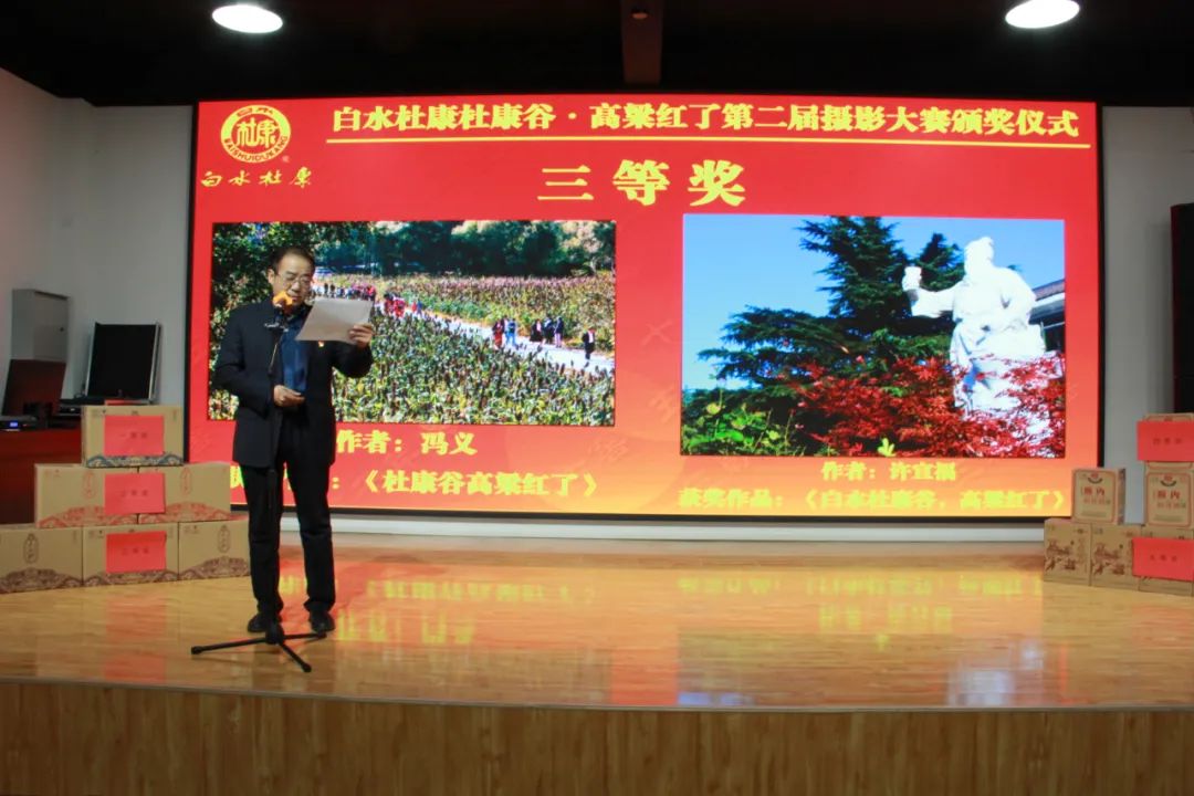 10月9日,经过近10天的精心组织、巧妙构思、谷中采风、认真评判,由中共陕西杜康酒业集团党委、陕西杜康酒业集团主办,白水县摄影家协会、白水县仓颉摄影俱乐部协办的第二届“草莓SOLO视频下载谷·高粱红了”百名摄影家采风活动颁奖仪式在草莓SOLO视频下载酒厂隆重举行。白水县摄影家协会艺术顾问冯义,白水县摄影家协会主席朱建明,白水县仓颉摄影俱乐部主席史洋军,集团党委委员、酒厂党支部书记、总裁王勇盛,集团总工程师、酒厂厂长李英俊,党委委员、草莓SOLO视频下载酒厂文化部长张宗贤及百名摄影家参加了颁奖仪式。