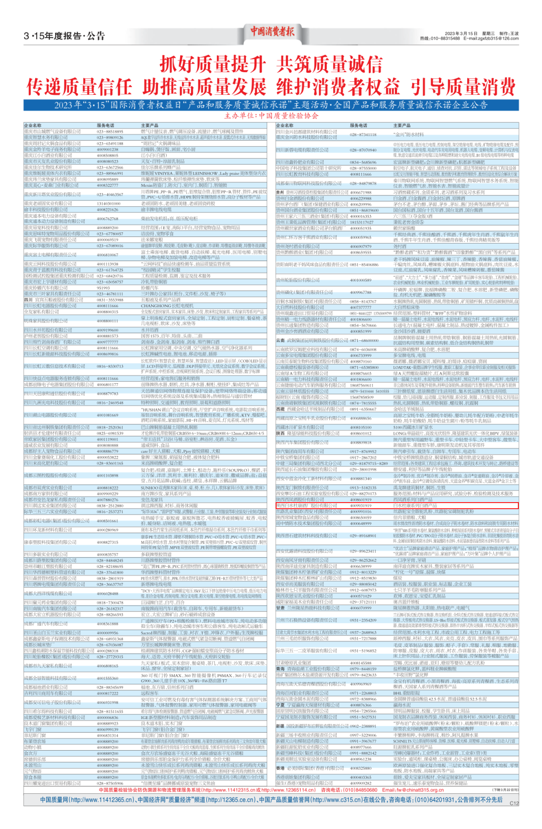 3月15日作为国际消费者联盟1983年确定的国际消费者权益日,一直以来,倍受社会各界关注,尤其是广大消费者高度关注的焦点。中国质量检验协会决定按照章程赋予的职能职责,继续在 2023年“3·15”国际消费者权益日活动中组织广大重质量、讲诚信的优秀企业,开展“产品和服务质量诚信承诺”主题活动,旨在传递质量信任,引导质量消费,维护市场公平竞争,营造良好市场环境,加强市场引导,共筑质量诚信,推动质量社会共治共享,助力企业高质量发展,助推产业转型升级,大力营造“政府重视质量、企业追求质量、社会崇尚质量、人人关心质量”的浓厚氛围,合力推进质量社会共治,扎实推进质量强国建设。