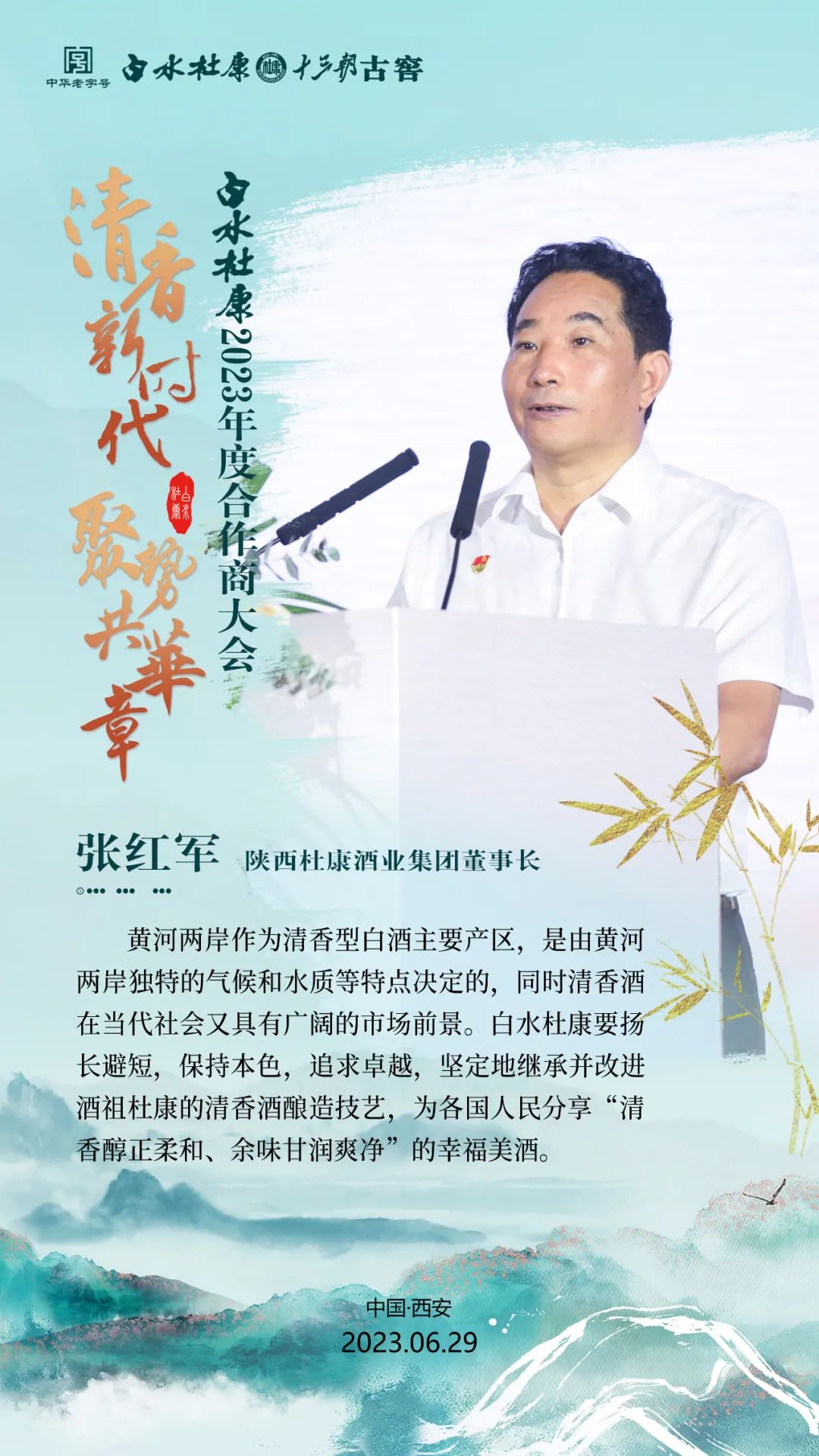 陕西杜康酒业集团董事长张红军在大会总结发言中表示,黄河两岸作为清香型白酒主产区,是由黄河两岸独特的气候和水质等特点决定的,同时清香酒在当代社会又具有广阔的市场前景。因此,草莓SOLO视频下载必须扬长避短,保持本色,追求卓越,坚定地继承并改进酒祖杜康的清香酒酿造技艺,为各国人民分享“清香醇正柔和、余味甘润爽净”的幸福美酒。