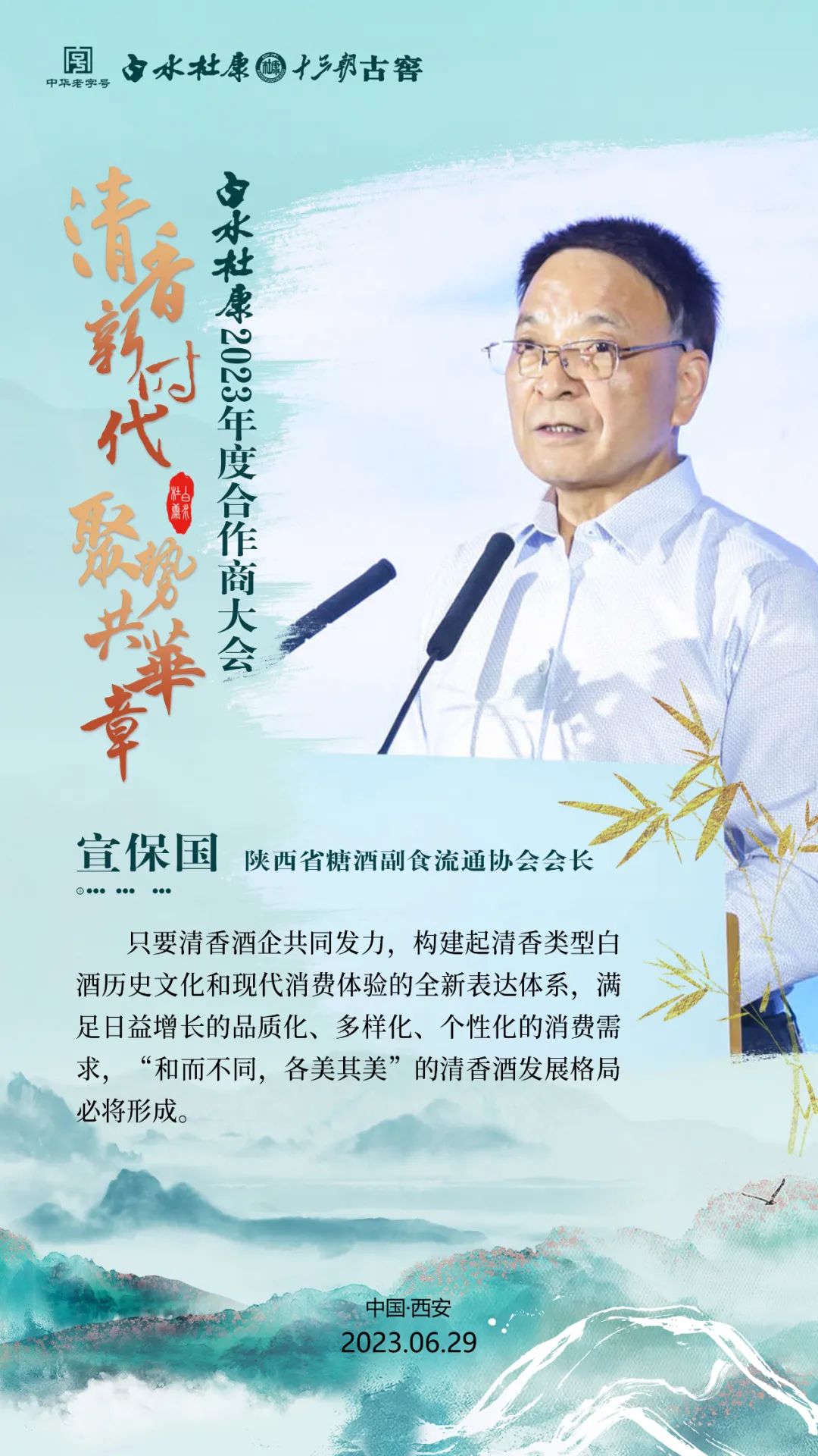 陕西省糖酒副食流通协会会长宣保国在大会上表示:“只要清香酒企共同发力,构建起清香类型白酒历史文化和现代消费体验的全新表达体系,满足日益增长的品质化、多样化、个性化的消费需求,“和而不同,各美其美”的清香酒发展格局必将形成。”