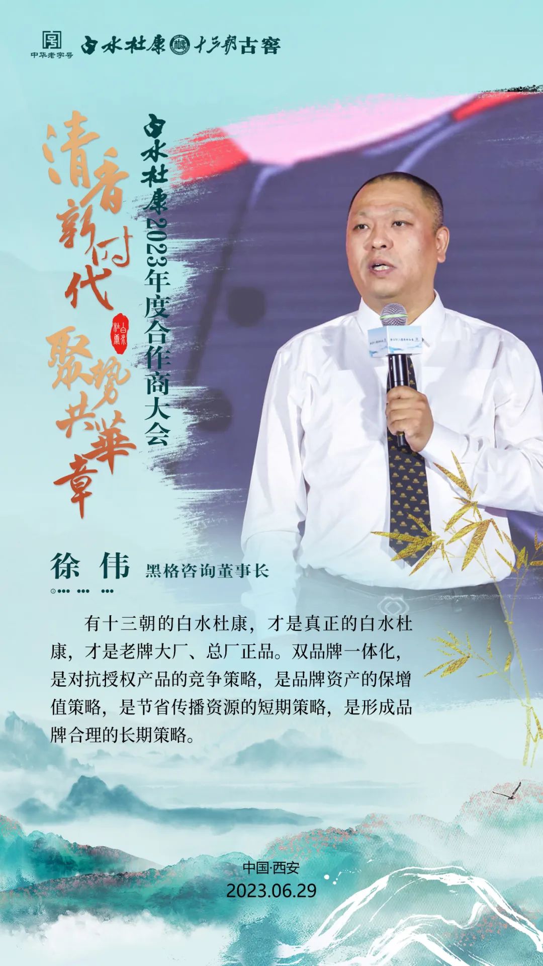 黑格咨询董事长徐伟发表演讲,2023年,清香型白酒将开启新纪元,开拓品类增长新赛道。他认为,当前清香白酒正呈现出十大趋势:一是大香型成就大品类;二是清香白酒呈现1超3强5集群格局,持续释放品类红利;三是产区外溢效应明显;四是价格持续高端化;五是消费群体年轻化、时尚化、多元化、个性化成为白酒消费主流趋势;六是消费者群体性迭代;七是产区黄金三角品牌效应;八是核心产区梯队品牌效应;九是清香第二品牌创富浪潮;十是产业资本蜂拥而至。