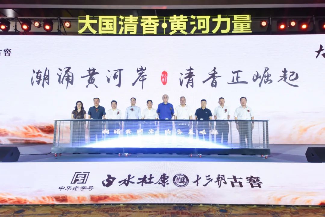 在与会领导、专家及经销商朋友们的见证下,王新国、邓理、张红军、贾智勇、宣保国、陈文博、张秉庆、傅长龙、赵书民、李爱峰上台共同点亮黄河,一同传递黄河力量,开启清香型白酒新未来。