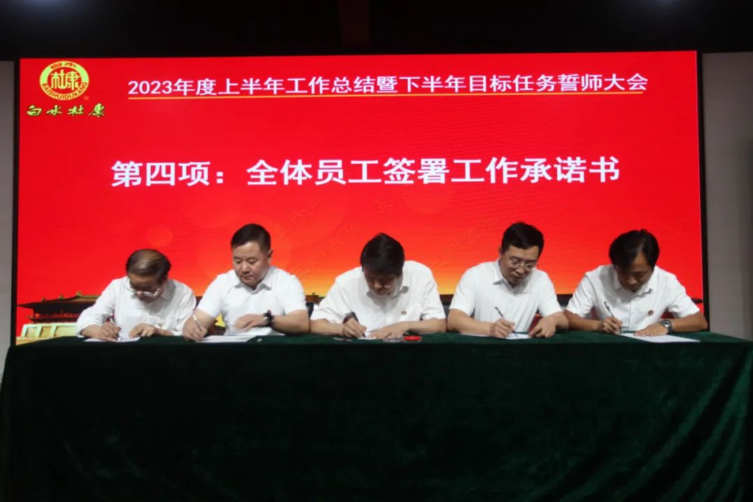 7月3日,集团召开上半年工作总结和下半年目标完成员工誓师大会。大会对上半年的工作进行了总结通报,并表彰了一批成绩突出的先进个人;同时,在黑格咨询集团公司的帮助下,对陕西杜康酒业集团的组织架构、部门编制、人事调整、职责权利等,进行了优化重组,重新修订。新任部门经理进行了表态发言,全体员工认真签署宣读了工作承诺书。大会严肃活泼,员工激情饱满,干劲十足!