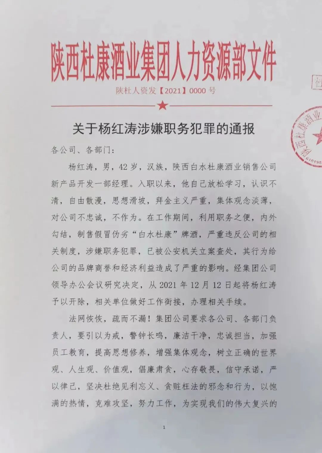 公司根据根据劳动法、公司员工手册等相关规定,经公司领导研究决定给予杨红涛解除劳动合同的处理。公司坚决打击一切违法违纪行为,对任何触碰职业道德和法律红线的行为零容忍,对任何人、在任何时候,都绝不放松!
