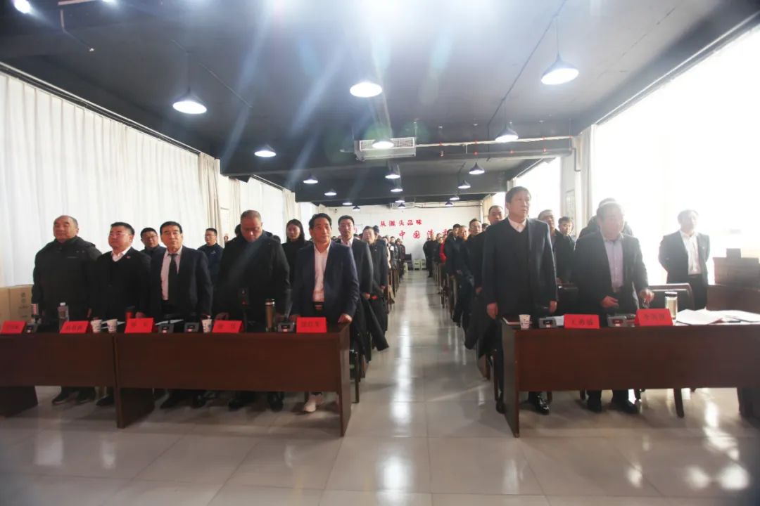 会议在庄严的国歌声中拉开帷幕,全体人员高唱国歌。