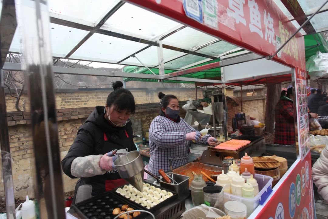 酒祖杜康庙会特色美食一条街,吸引着八方游客慕名而来。无论是白水本地特色美食——水煎包、炸油糕、凉皮、凉面,还是长沙臭豆腐等地道小吃,每一种食品有浓浓的年味儿,刺激着游客的味蕾。