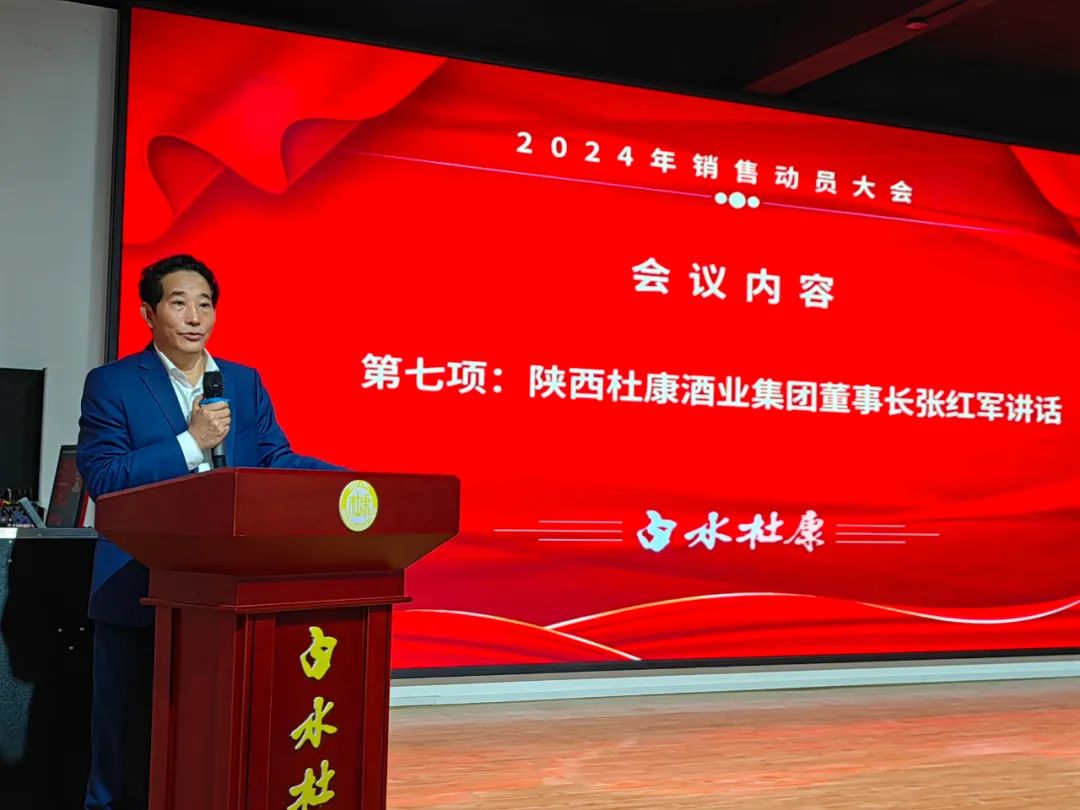 3月1日,陕西杜康酒业集团召开“新目标 新征程 新作为”2024年销售动员大会,集团董事长张红军、总裁王勇盛、副总裁商景枫、总工程师李英俊、生产厂长李富强、各事业部负责人、各区域销售人员及市场人员等近百人参会,共同为2024年度销售工作开篇布局。