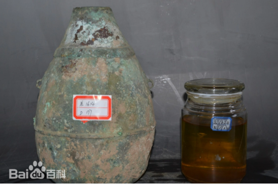 就比如2007年11月8日,白水县在抢救性发掘一处被盗墓贼“光顾”的战国古墓葬时,在一个密封的青铜壶内,发现约2公斤的神秘液体,开启壶盖尚余酒香。