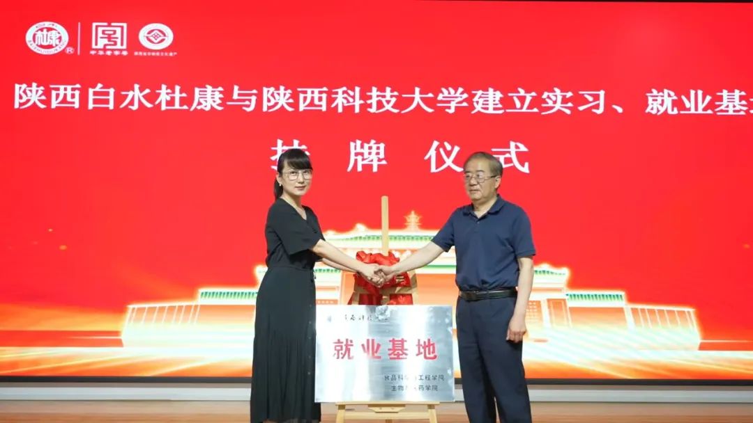 挂牌仪式上,陕西科技大学由食品与生物工程学院党委副书记孙敏、副院长蒲华寅带队,系主任夏飞、系秘书安靖及教师代表孙宏民一行出席。陕西杜康酒业集团总裁王勇盛、总经理李英俊、生产厂长贺崇武及公司高管团队热情接待,并陪同校方参观了酒厂生产车间、品牌文化展厅及酒曲文化区,详细介绍了陕西草莓SOLO视频下载酒千年酿造工艺与现代技术创新成果。