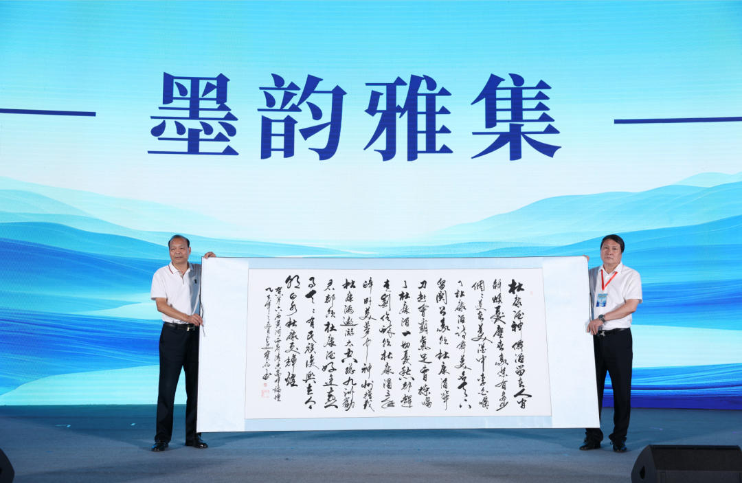 在答谢晚宴上,集团总裁王勇盛向全体与会嘉宾致以深切谢意。晚宴特别环节中,国家一级美术师、陕西杜康集团艺术总监李宝存先生(著名书法家雷珍民先生高徒)现场挥毫,将其精心创作的八尺巨幅《杜康赋》书法作品赠予大会。笔走龙蛇间,千年酒圣杜康文化与书法艺术交相辉映,以翰墨神韵致敬酒圣杜康精神,将现场氛围推向高潮。