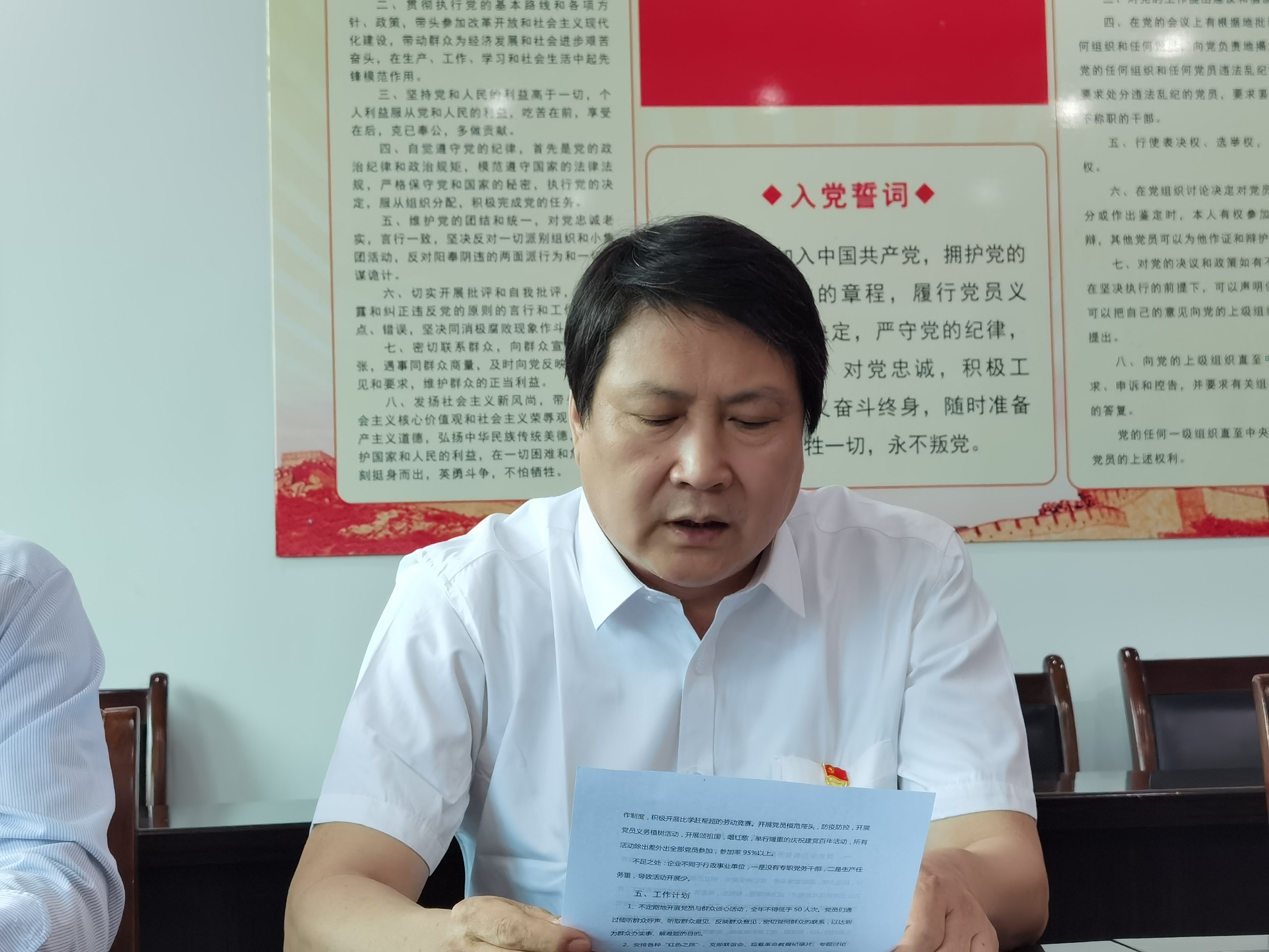 最后,党支部书记王勇盛作了总结讲话,他强调, 党史学习教育专题民主生活会和是党组织生活的重要制度,也是对每位党员,特别是党员领导干部加强党性修养,增进同志之间的思想交流,加强党内民主监督,增强党组织的活力,都具有重要的意义。在今后工作中积极落实到行动中,保持作风整顿第一阶段工作力度,保持全员参与热度,振奋精神,党员干部以良好的作风示范带动全厂员工作作风持续转变。
