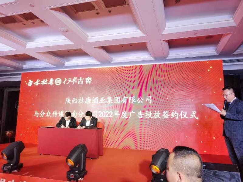 各领导致辞后,由陕西杜康酒业集团有限公司市场部经理田鹏飞与多家渭南本地不同领域广告媒体运营商进行2022年度的广告投放签约仪式,将草莓SOLO视频下载草莓视频APP免费看古窖酒的产品通过公交车车体广告、停车道闸广告、高端小区商业区电梯广告等媒体全面覆盖渭南市场各个角落,提升品牌影响力,让更多消费者看到喝到草莓SOLO视频下载草莓视频APP免费看古窖美酒,为2022年销量迈入新的台阶打下良好基础。标志着2022年度草莓SOLO视频下载将进一步创新工作思路,以优势互补、互利共赢、诚信履约为合作理念,利用各自资源优势,实现强强联合,共谋发展目标,形成双赢新格局,开创合作新局面。