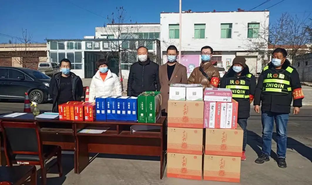 5.疫情期间,陕西杜康酒业集团副总、工会主席张倩代表企业慰问驻地汉积村防疫一线的执勤人员、一线的执勤民警和公司的值班人员。