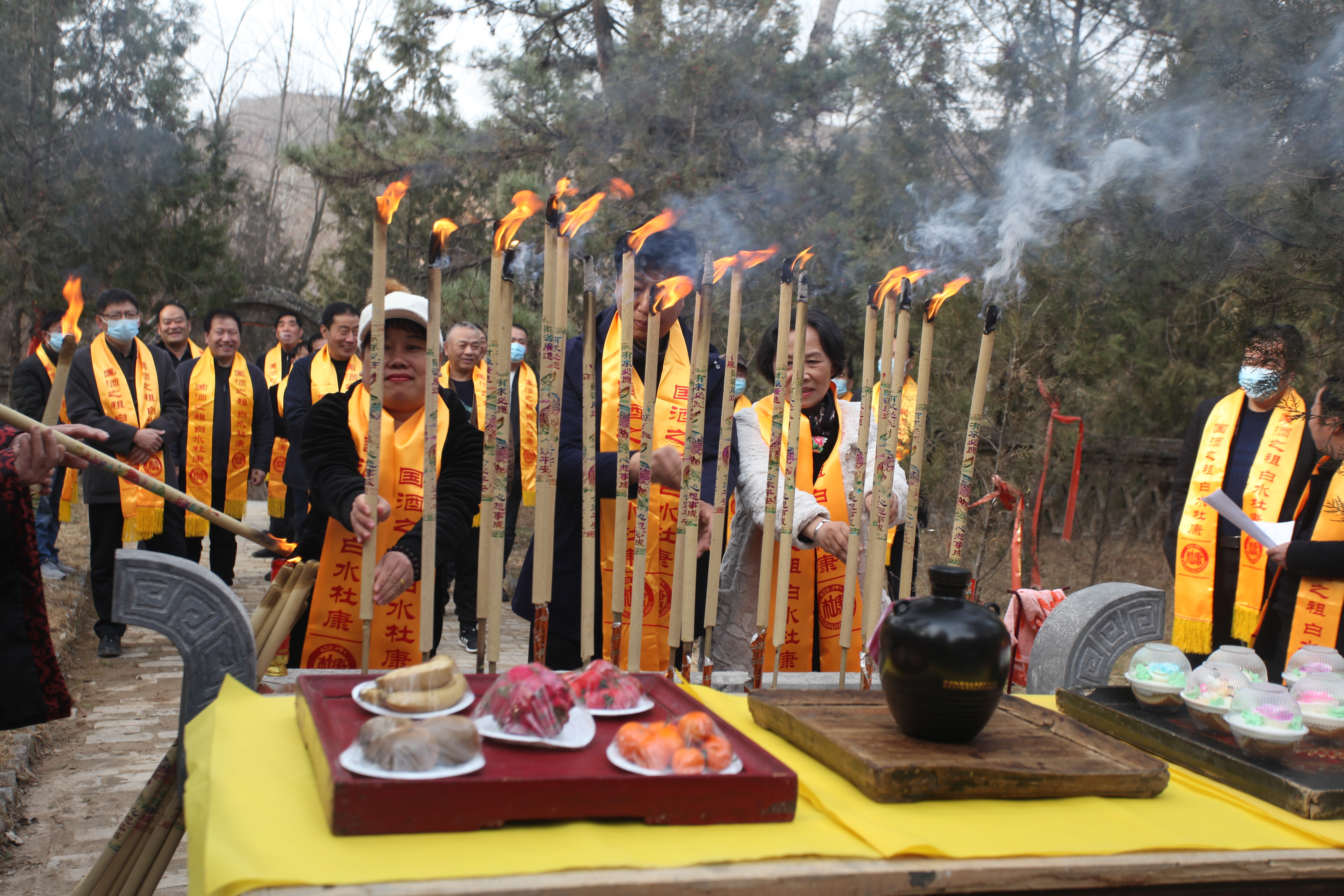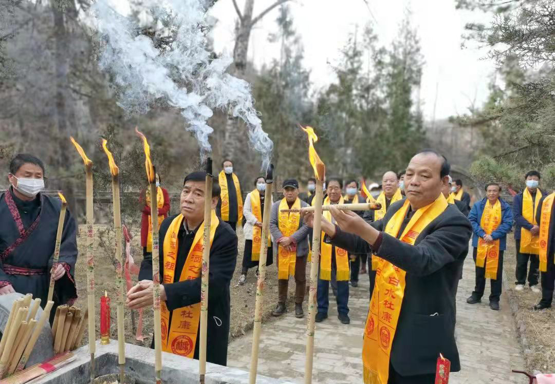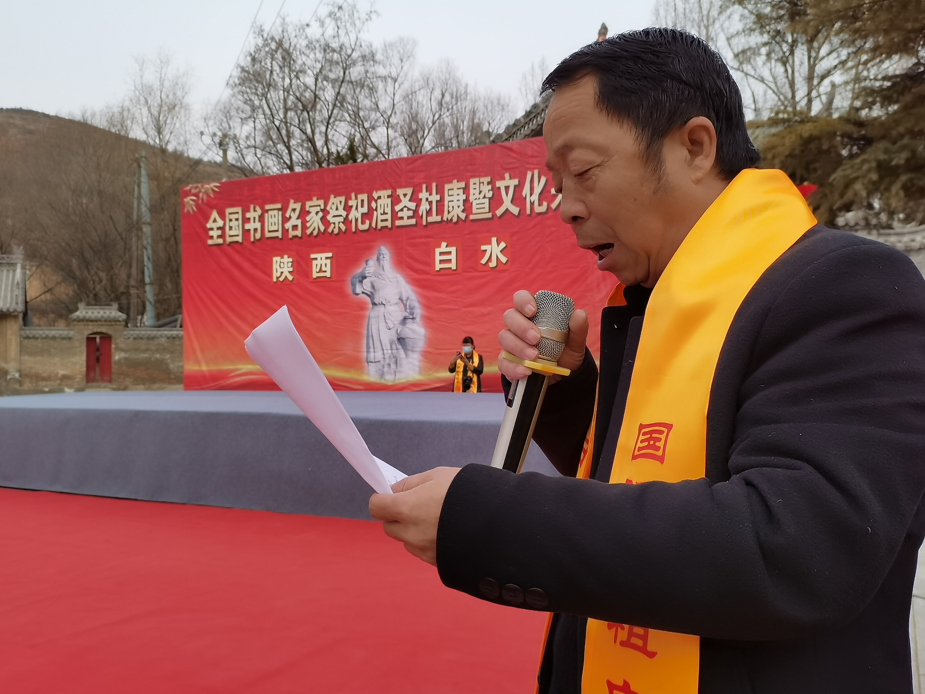 早晨9时58分,祭祀活动开始。书画艺术家们,身挎绶带,表情庄重,缓缓来到酒圣杜康墓前,敬献花篮,焚香祭拜,追思功勋,激发灵感,启迪智慧。