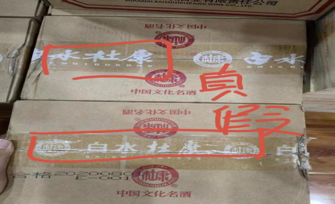 4、包装箱防伪标与我公司的不同(位数与我公司不一致,我公司的是每个码的数字不一致,假冒伪劣产品标码是同一码,贴放位置也与我公司不同,我公司防伪码统一贴放在同一位置,假冒伪劣产品的防伪码贴放随意,我公司防伪码经扫码后可进入官网进行真伪辨别查询,假冒伪劣产品条码细,模糊不清,经扫码查询后无反应,我公司防伪标码外边框有专用防伪图层颜色,假冒伪劣产品没有)。