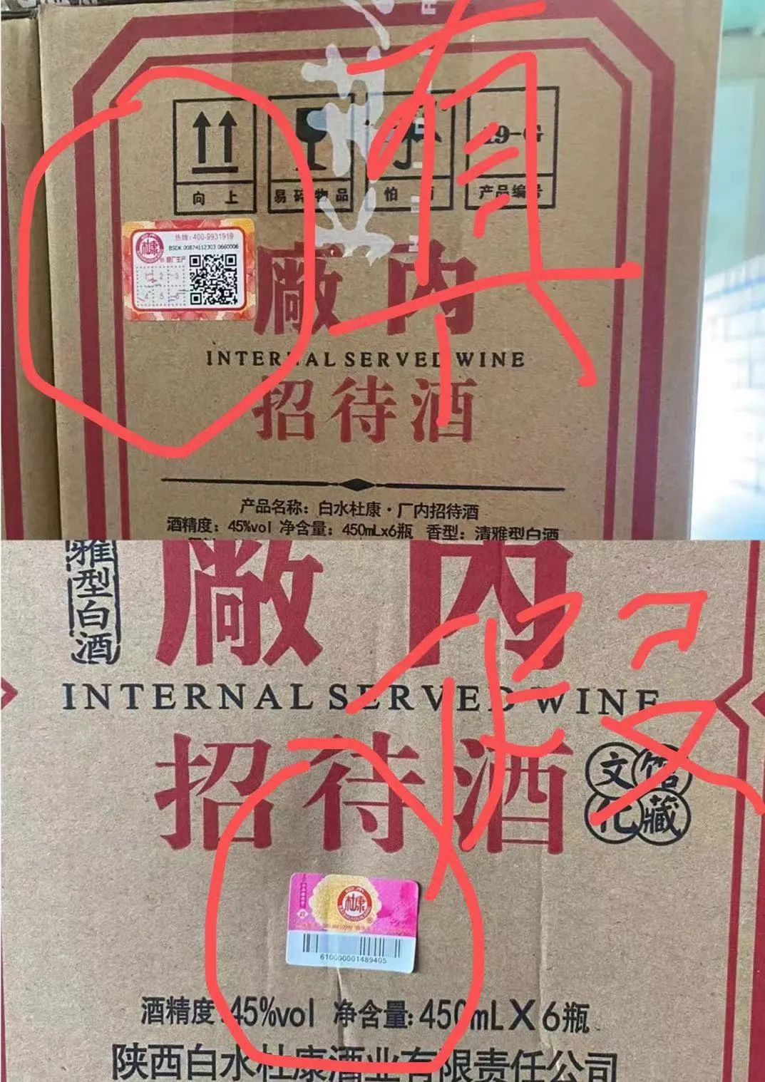 2、产品外包装的防伪标不同(位数与我公司不一致,我公司的是每个码的数字不一致,假冒伪劣产品标码是同一码,我公司防伪码经扫码后可进入官网进行真伪辨别查询,假冒伪劣产品二维码模糊不清,经扫码查询后无反应,我公司防伪标码外边框有专用防伪图层颜色,假冒伪劣产品没有)。