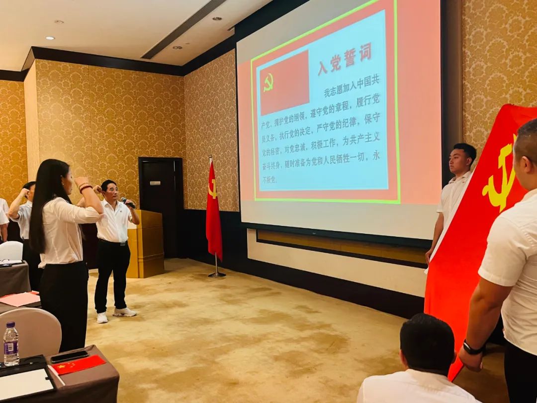 (董事长张红军带领全体党员、入党积极分子重温入党誓词)